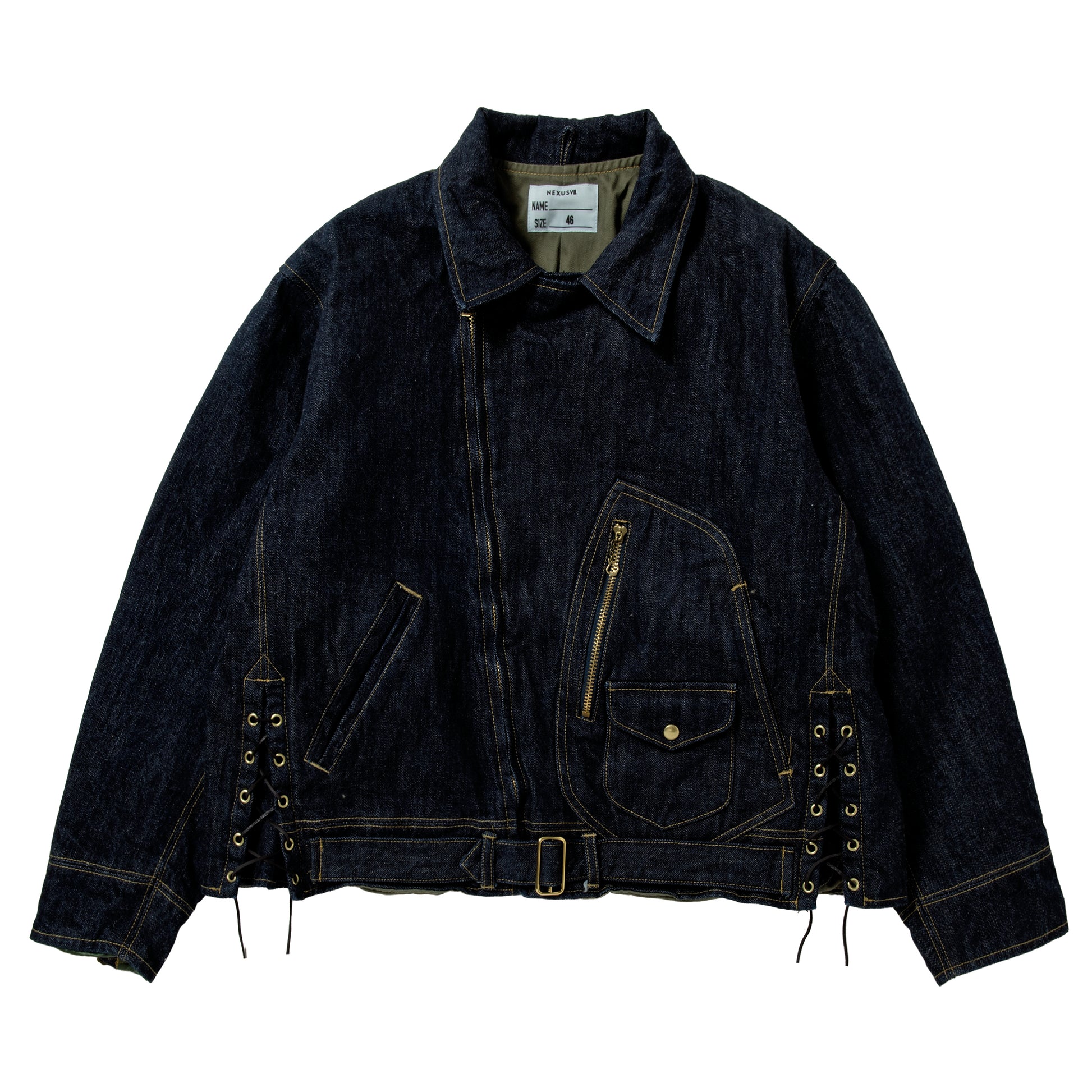 特徴的な40年代のDポケットやサイドレースの仕様など、ヴィンテージのライダースジャケットのディテールを落とし込んだオリジナルデニムライダースジャケットです。