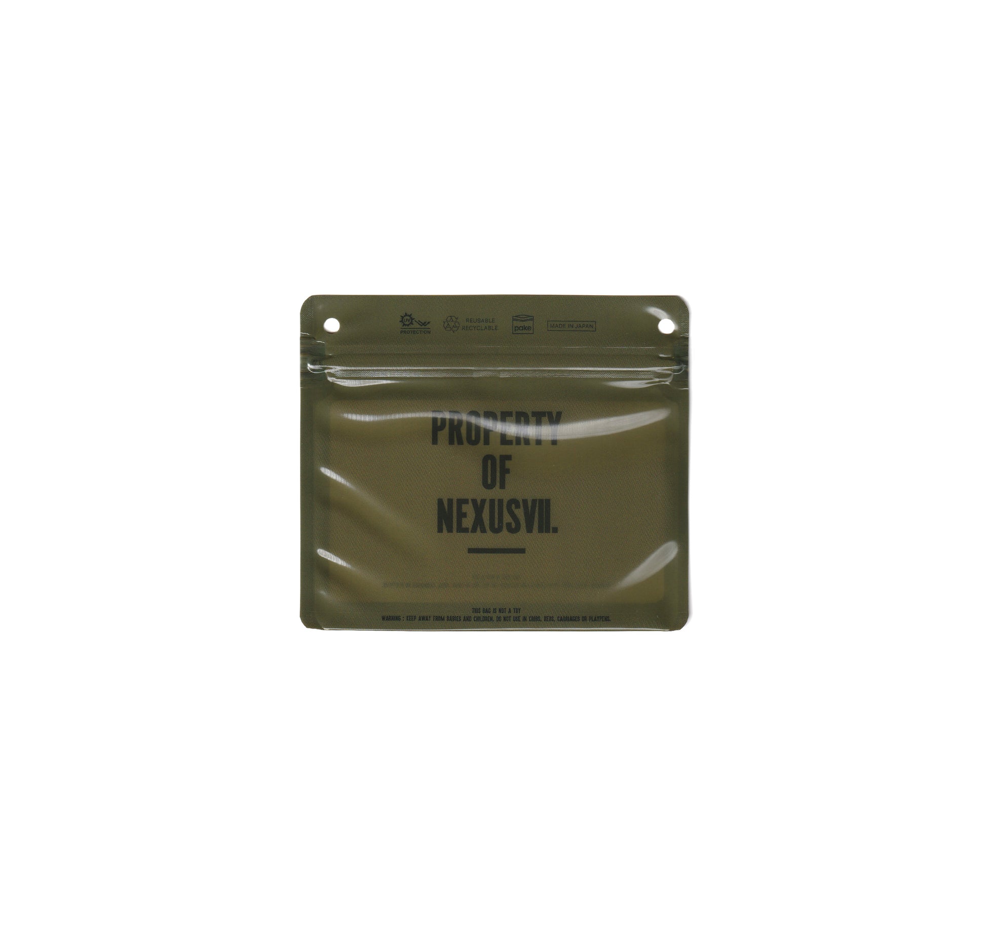 PAKEに別注し制作した、防紫外線、防水、防塵、防臭機能付きで繰り返し使える丈夫な素材のジップバッグです。